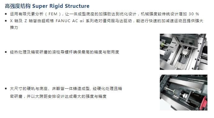 低重心 30° 硬軌斜床設(shè)計,確保本系列優(yōu)異的結(jié)構(gòu)剛性與重切削能力