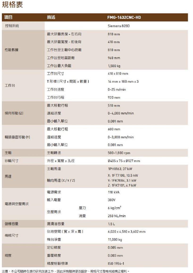 福裕成型磨床 FMG-1632CNC-HD此機(jī)臺(tái)為福裕評(píng)估市場(chǎng)趨勢(shì)和需求而開發(fā)出的高效率動(dòng)柱型 CNC 精密成型磨床,可廣泛應(yīng)用于汽機(jī)車業(yè)、刀具業(yè)、模具業(yè)、氣液壓零組件業(yè)、電子業(yè)、半導(dǎo)體業(yè)、醫(yī)療、航天業(yè)、機(jī)械及其零配件業(yè)及一般加工業(yè)等。動(dòng)柱式高剛性結(jié)構(gòu),可精密控制軸向運(yùn)動(dòng)至 0.001 mm,適合工廠自動(dòng)化之需求,F(xiàn)MG-1632CNC-HD配備嶄新 SIEMENS 數(shù)控系統(tǒng)之福裕高智能 CNC 成型磨床可滿足絕大部分的研磨工作需求。