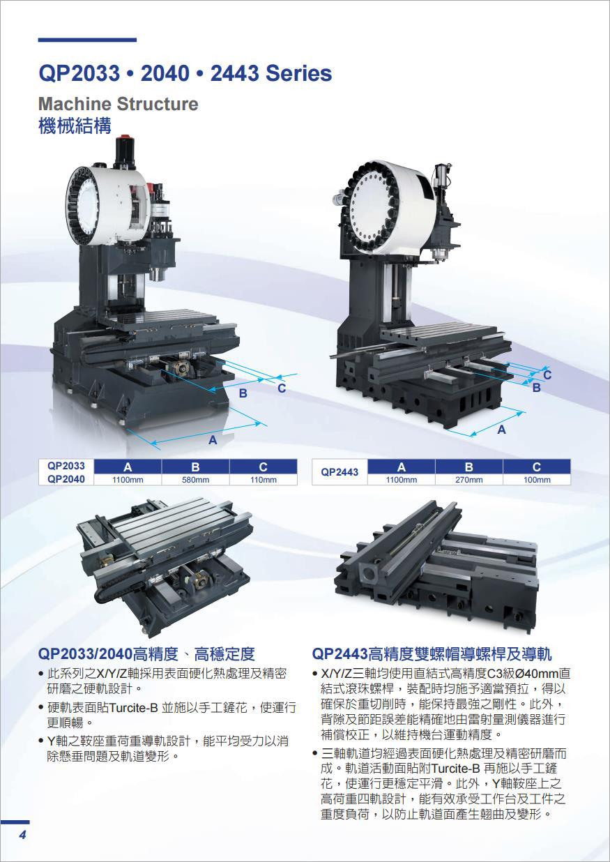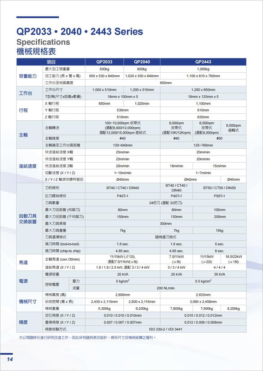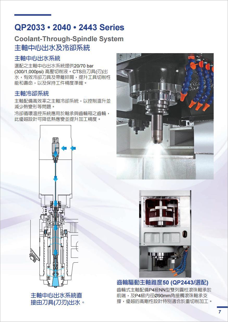 主軸轉(zhuǎn)速:可達(dá) 8,000rpm 主軸馬達(dá):可達(dá) 22kW (35HP) 主軸錐度:BT/CT/DIN 40或50
