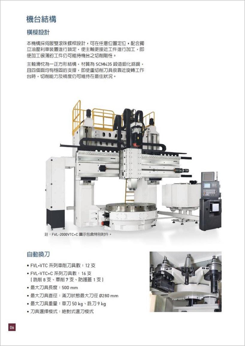 福裕FVL-VTC 系列立式車床非常適合重切削之車、銑、搪、研磨、鉆孔和攻牙等加工切削應(yīng)用。搭配切削主軸,提供更高的靈活加工能力,使得復(fù)雜的工件能在同一臺(tái)機(jī)器上加工完成。