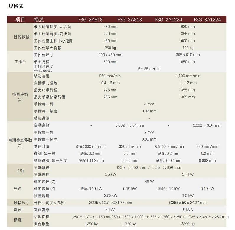 福裕平面磨床FSG-3A818工作臺尺寸 ( 寬 x 長) :可達200 x 460mm